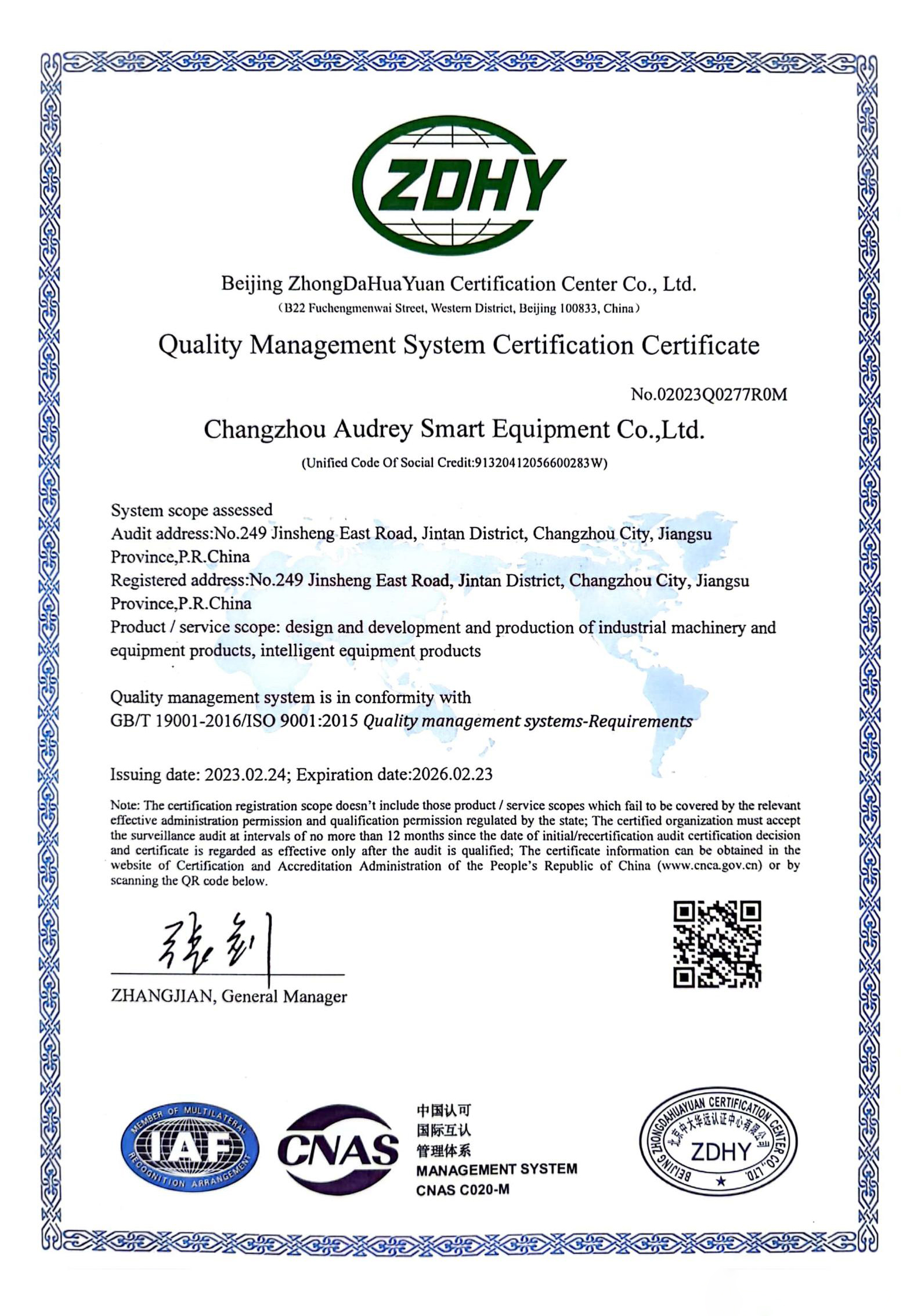 用英語版IOS資質證書